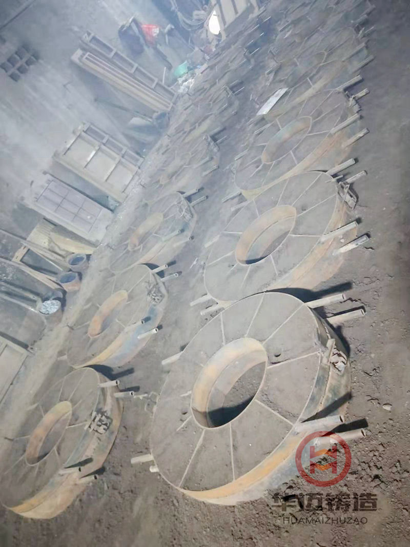 華邁鑄造900重型球墨鑄鐵井蓋外圈等待澆鑄